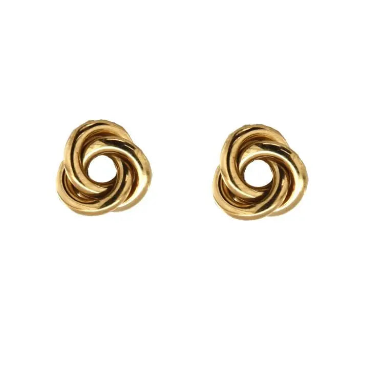18k Solid Yellow Gold Knot Open Polished Post Earrings