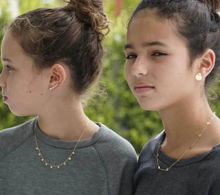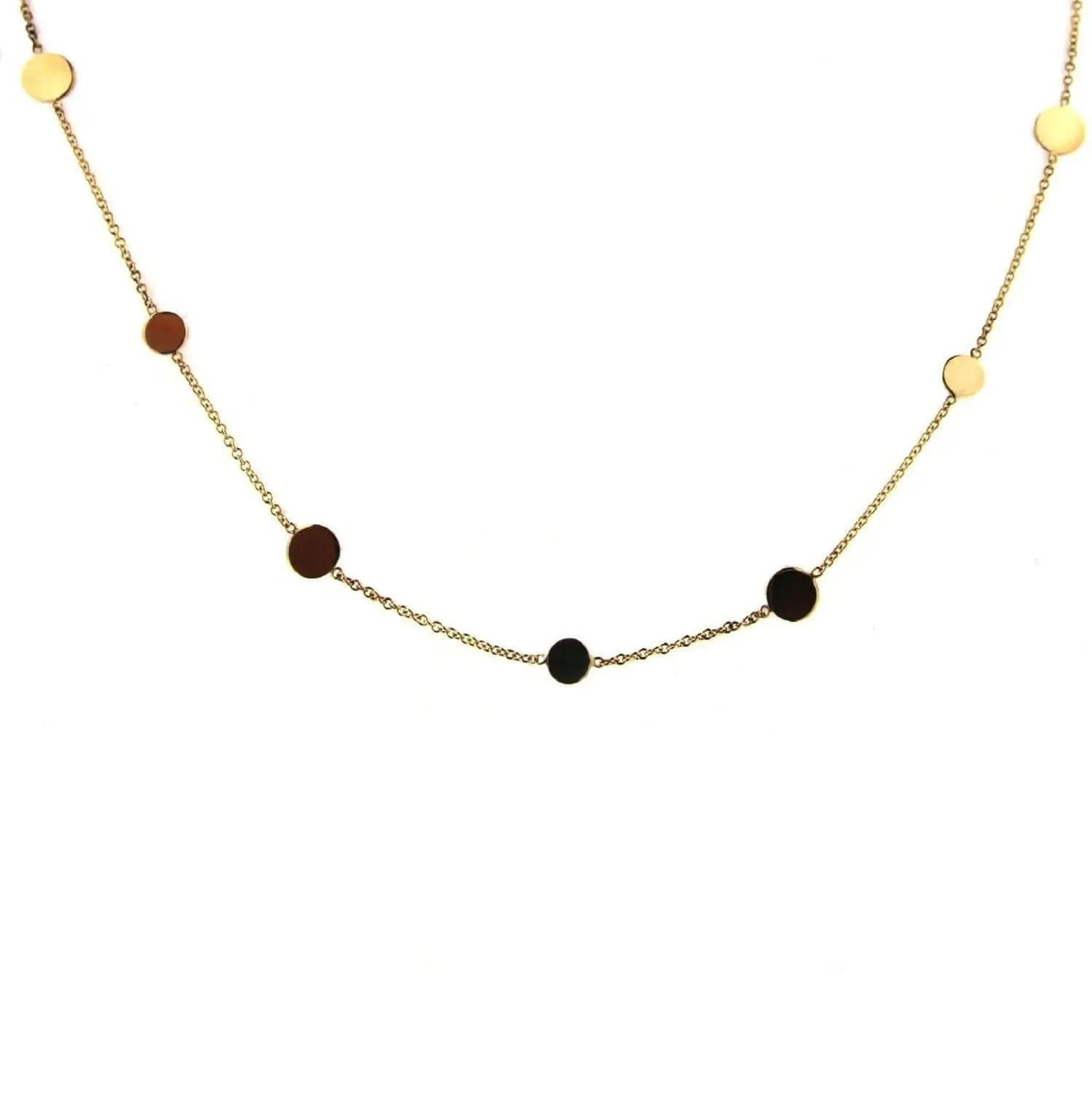 18k Solid Yellow Gold Large and Small Circles Necklace: Elevate your style with this exquisite 17.50-inch necklace, crafted in Italy from hypoallergenic 18k yellow gold. The necklace features large and small circles with diameters of 0.23 and 0.19 inches, respectively, and it arrives elegantly presented in an Amalia gift box and bag, making it a perfect accessory choice.