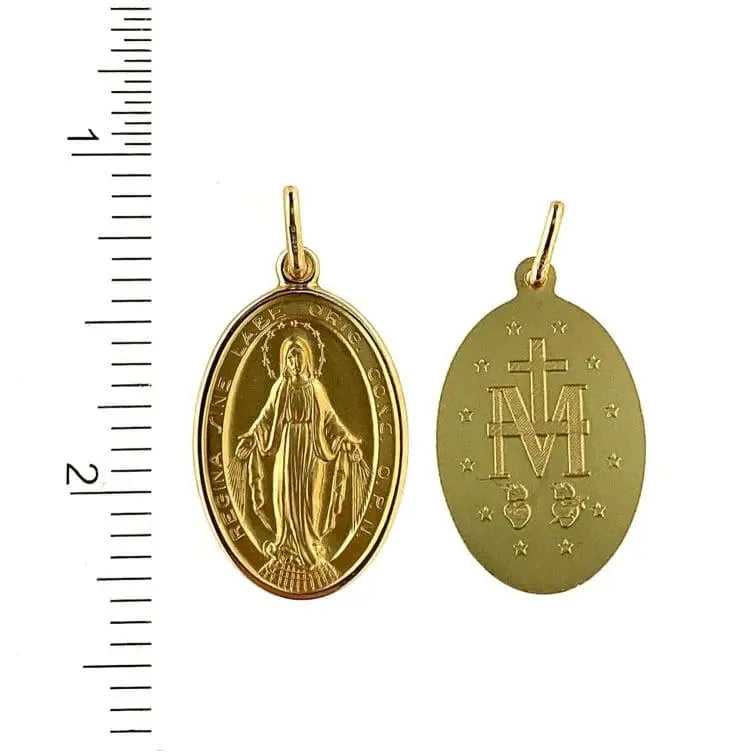 Immerse yourself in the spiritual radiance of the 18K Solid Yellow Gold Large Miraculous Medal Pendant, also celebrated as the Medal of Our Lady of Grace, available in a choice of three sizes to perfectly match your devotion: