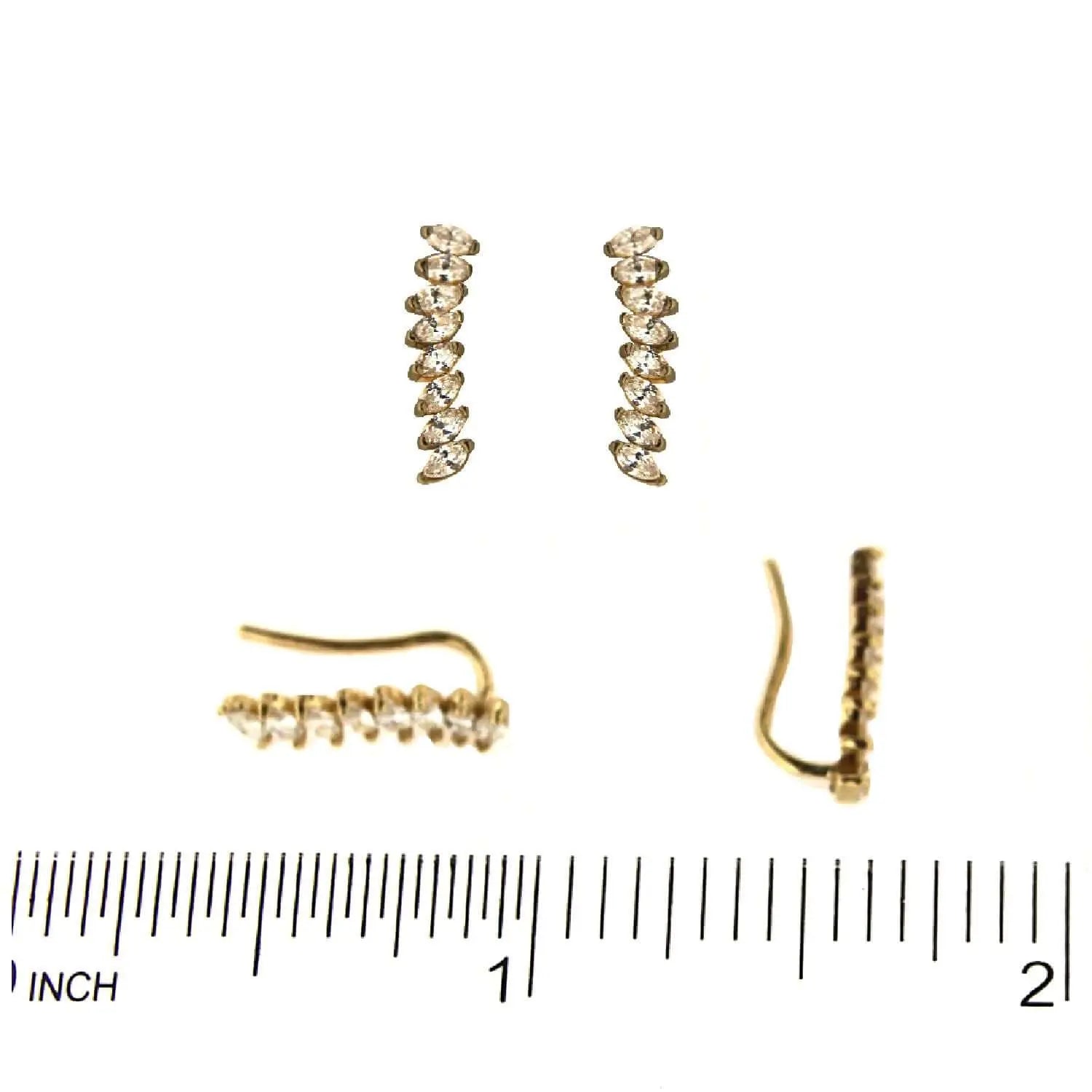 Elevate your style with the refined beauty of our 18K Solid Yellow Gold Marquises Zirconia Crawler Earrings . Measuring 0.58 inches, these exquisite earrings feature a graceful design adorned with sparkling marquise-cut zirconia stones, adding a touch of sophistication and glamour to any outfit. Meticulously crafted from hypoallergenic 18K solid yellow gold, these earrings are lead and nickel-free, ensuring a safe and comfortable wear, especially for girls aged 11 years old and up.