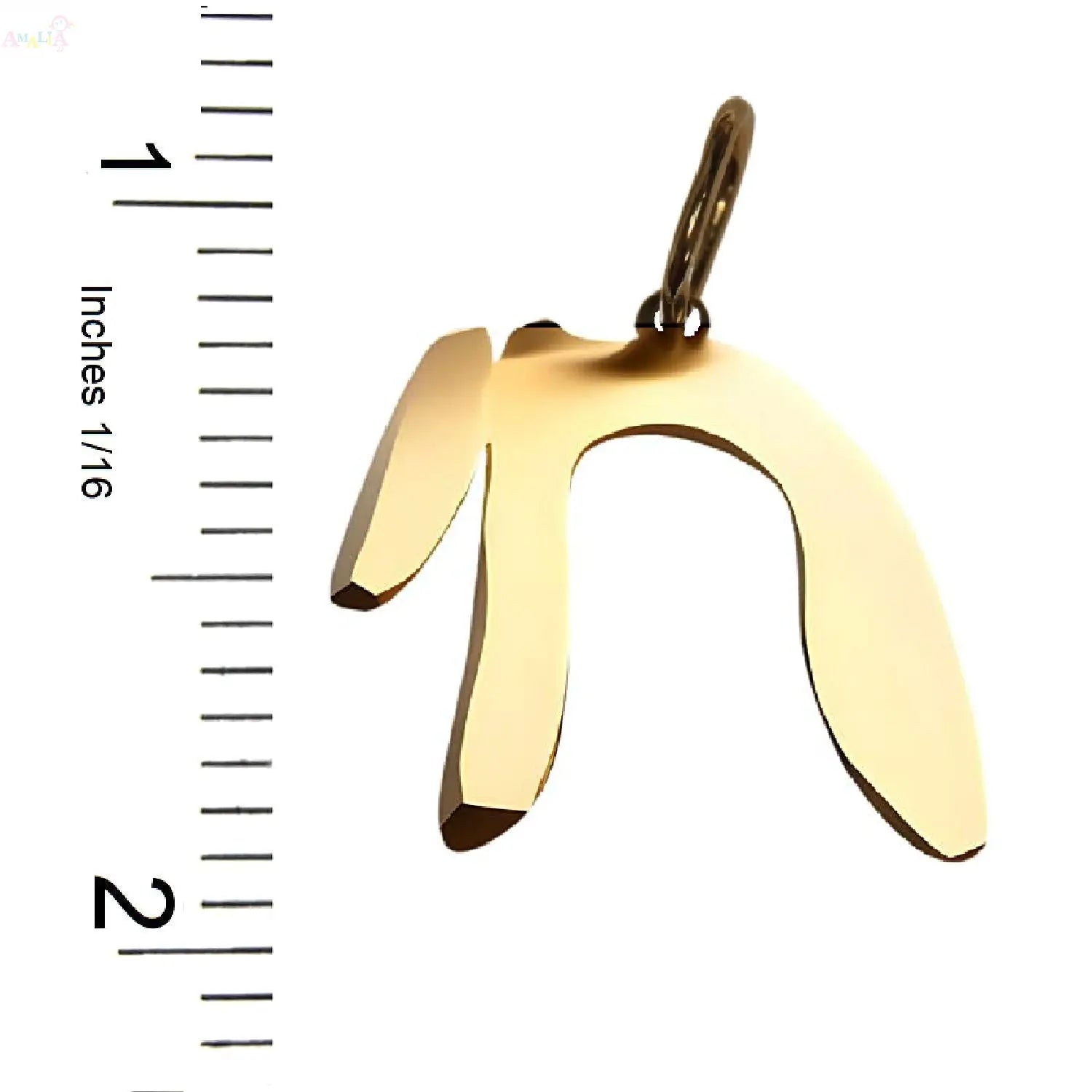 This pendant measures 0.77 x 0.75 inches (19.6 x 19 mm) without the bail, with a bail internal size of 0.24 x 0.16 inches (6 x 4 mm), making it ideal for pairing with a wide range of chain styles. Its sleek and modern design reimagines the traditional Chai symbol with sophistication.
