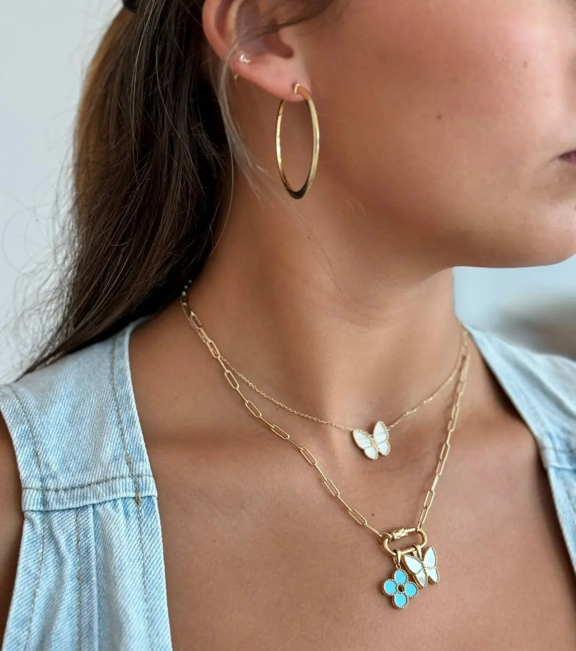 Amplify your fashion game with our exquisite 18k Solid Yellow Gold Mother of Pearl Tilted Butterfly Pendant Necklace. This finely crafted necklace features a delicate butterfly pendant measuring 0.62 x 0.54 inches, gracefully suspended from a 16-inch chain with an additional ring at 15 inches, catering to ages 14 years and up. Meticulously crafted in Italy using hypoallergenic 18k gold, this necklace exudes both elegance and exceptional quality. Your purchase includes an elegant Amalia Gift box and bag, making it a perfect gift choice or a timeless addition to your personal jewelry collection. Discover the allure of Italian craftsmanship and timeless beauty today.