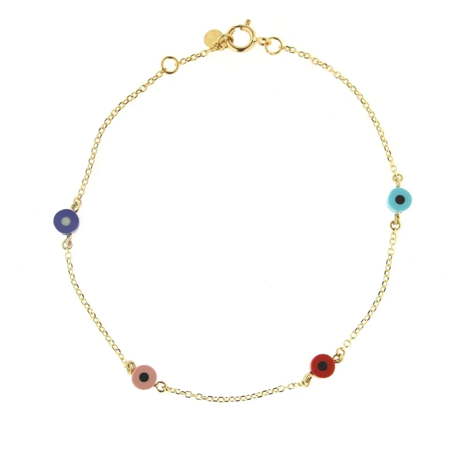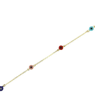 Embark on a journey of enchantment and safeguarding with our captivating 18K Solid Yellow Gold Multi Color Evil Eye 7 inch Bracelet, expertly handcrafted in the artisan workshops of Greece. This exquisite piece, featuring an adjustable ring at 6.50 inches, is meticulously fashioned from hypoallergenic 18K yellow gold that is both lead and nickel-free, ensuring safety and comfort for all skin types. The bracelet showcases a spectrum of vibrant colors, each symbolizing protection and good fortune. Presented in our signature Amalia Gift Box and Bag, this bracelet transcends mere adornment—it's a profound statement of fashion and meaning. Perfect for adding a touch of elegance to any ensemble, this bracelet invites you to explore the fusion of style and symbolism. Elevate your look with this extraordinary piece, a timeless addition that exudes charm and allure. Made in Greece, it combines traditional craftsmanship with modern elegance, making it an ideal gift or personal treasure. Ideal for daily wear or as a meaningful gift, it serves as a beacon of safety and style, guarding against misfortune while enhancing your aesthetic.
