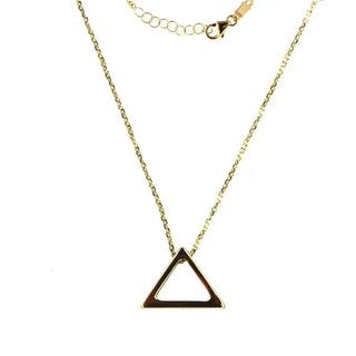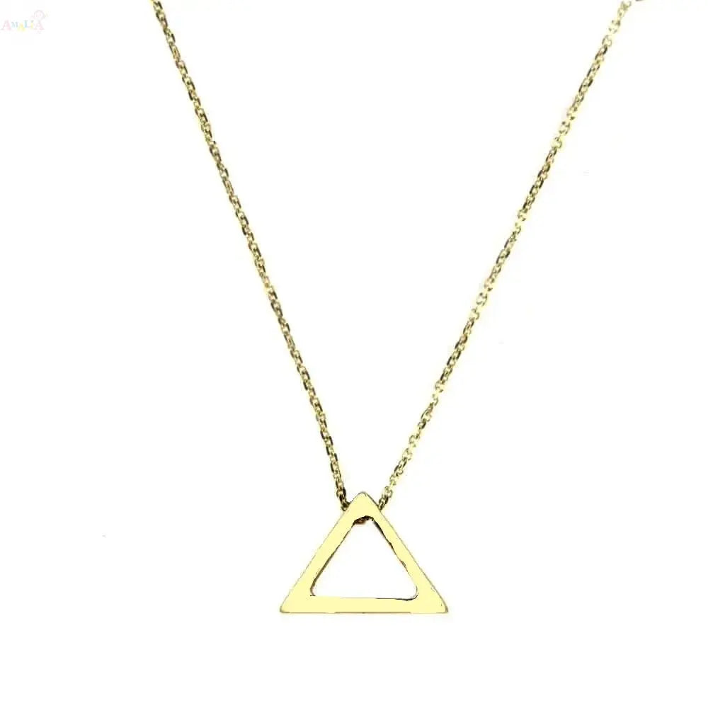 Made from hypoallergenic solid 18K yellow gold, this necklace ensures both comfort and elegance. Its sleek, open triangle design offers a modern, minimalistic aesthetic that’s perfect for layering or wearing as a subtle statement piece. Whether for everyday wear or a special occasion, this necklace embodies effortless style.