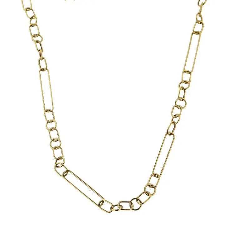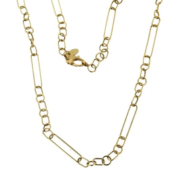 Adorn yourself with timeless elegance with our 18K Solid Yellow Gold Open Links Necklace - Italian-crafted and boasting a length of 18 inches, this exquisite necklace is meticulously fashioned from hypoallergenic 18K gold. It features a captivating blend of short and long hollow links, measuring 0.26 x 0.17 inches and 0.83 x 0.17 inches respectively, creating a stunning visual contrast.