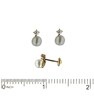 18K Solid Yellow Gold Pearl and Zirconia Screwback Earring