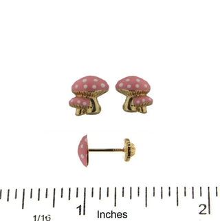 18K Solid Yellow Gold Pink Enamel Mushroom Screwback Earrings