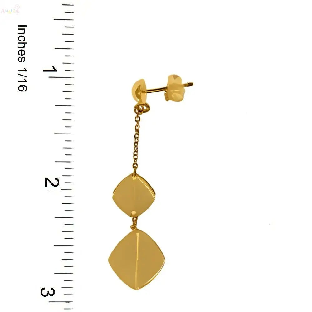 Add a touch of modern elegance to your jewelry collection with the 18K Solid Yellow Gold Polished Double Rhombus Dangle Earrings. Expertly made in Italy, these stunning earrings measure 1.8 x 0.45 inches and feature two polished, dimensional rhombus shapes connected by a diamond-cut chain for a sleek and sophisticated look. A 5mm half-gold ball tops the design, adding a refined finishing touch.