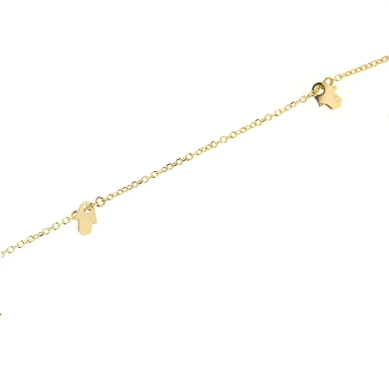 Embrace the mystical allure of the 18K Solid Yellow Gold Polished Mini Hamsa Charm Bracelet. This exquisite piece of jewelry, crafted in Greece, measures 7 inches with an additional adjustment ring at 6.25 inches, making it a perfect fit for most wrists. The bracelet features three polished, dangling Hamsa hands, each symbolizing protection, blessings, and power, bringing not only beauty but also a sense of security to those who wear it.