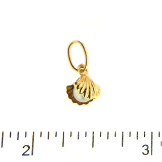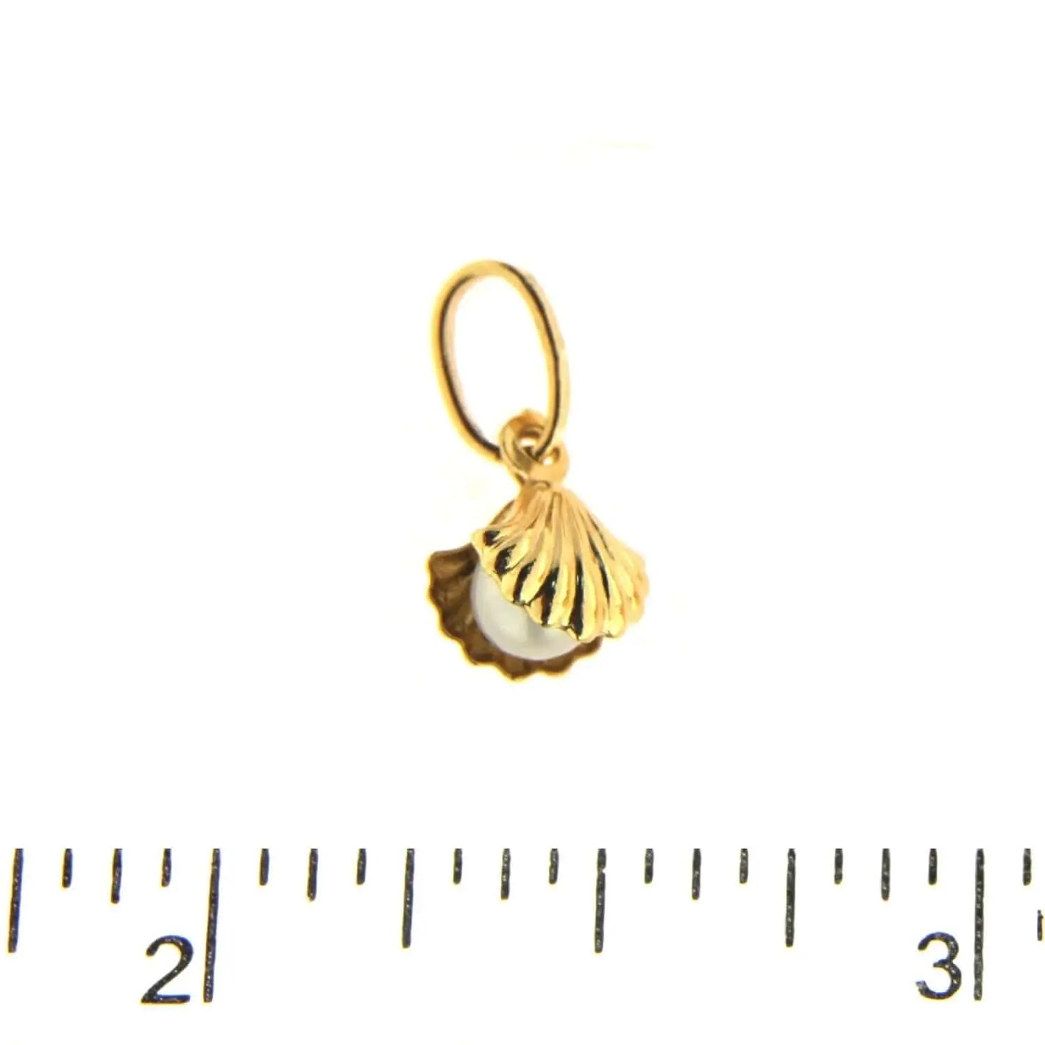 18K Solid Yellow Gold Polished Oyster with Cultivated Pearl Pendant 0.24 x 0.26 inch