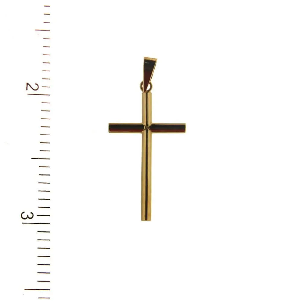 Discover the epitome of elegance with our 18K Solid Yellow Gold Polished Round Tube Cross Pendant. This exquisitely crafted piece stands out with its sophisticated and timeless design. Measuring 1.45 inches in height with the bail and featuring a 2.20mm tube, the pendant strikes the perfect balance between delicacy and eye-catching appeal.