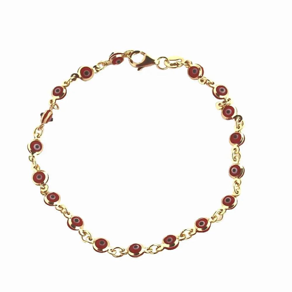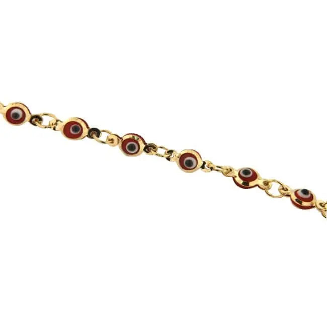 Transform your style and feel secure with our exquisite 18K Solid Yellow Gold Red Color Evil Eye Bracelet. This 7 inch piece of jewelry, with a 0.16 inch width, elevates your appearance and acts as a symbol of good fortune.
