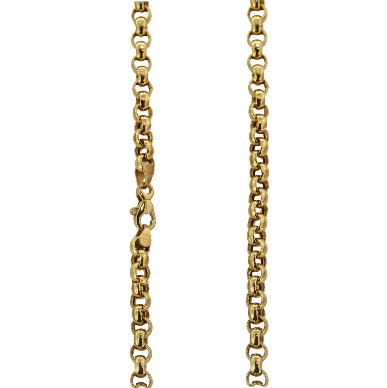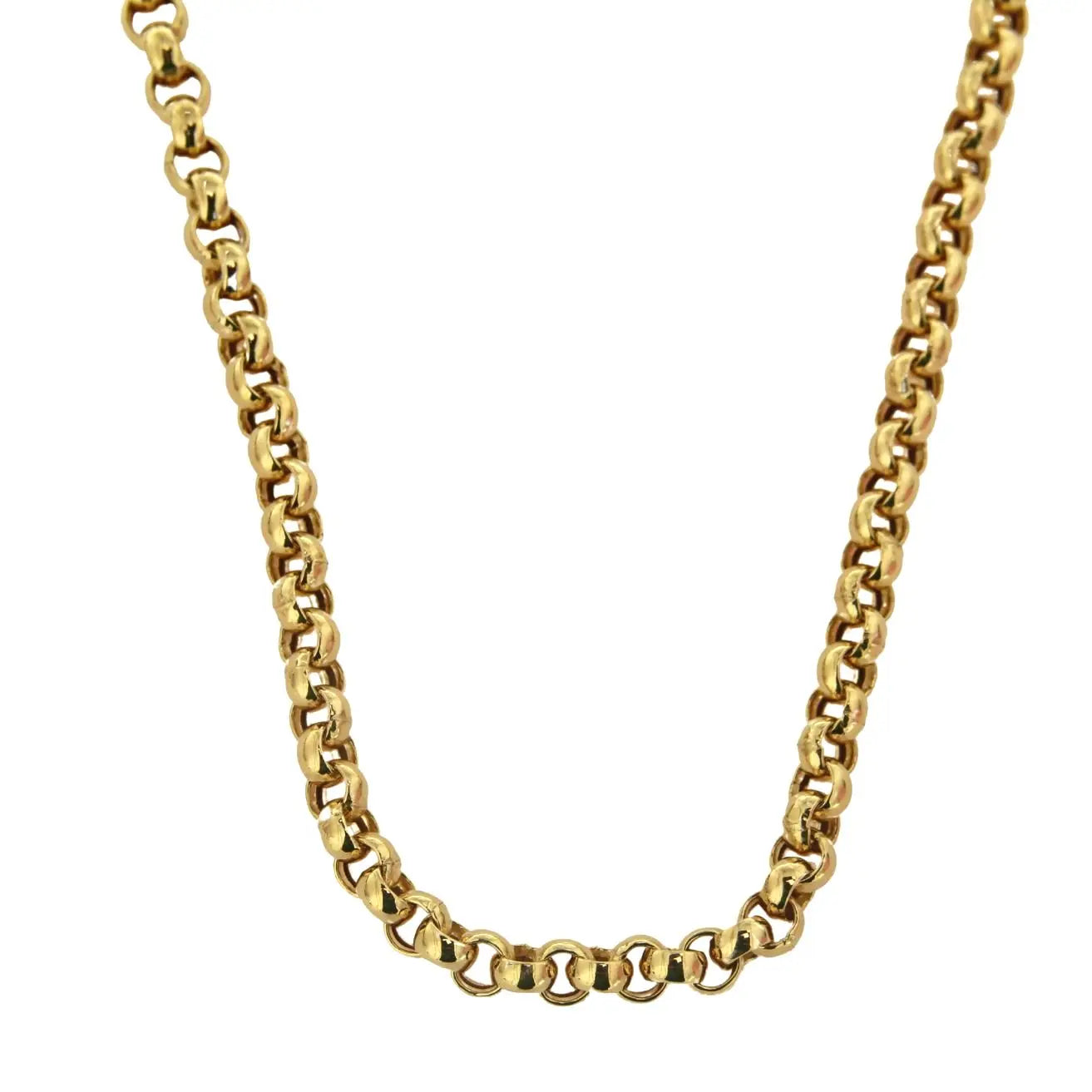 Enhance your style with our premium 18k Solid Yellow Gold Rollo Chain With Lobster Clasp, also known as the "Hilo Portuguez." This exquisite thick chain measures 17.75 inches in length and features a sleek 0.18-inch width, perfectly balanced to showcase your favorite large pendant. Weighing 13.25 grams, it offers a lightweight feel without sacrificing its luxurious appeal.