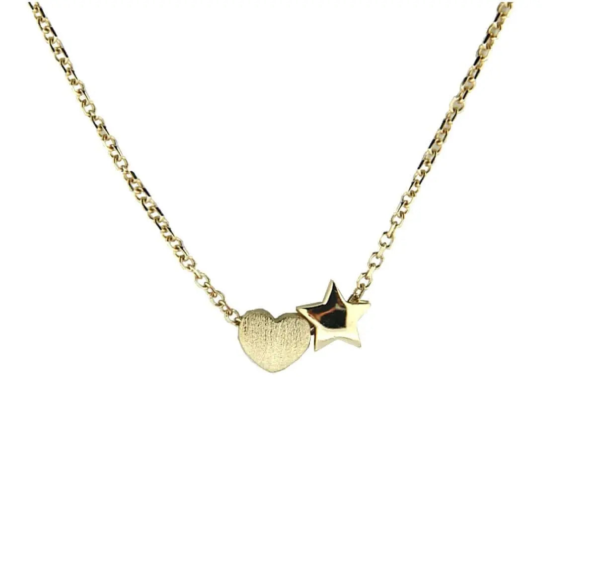 Experience the perfect blend of elegance and charm with our 18K Solid Yellow Gold Satin Heart and Polished Star Necklace. Handcrafted in Italy from hypoallergenic solid 18K yellow gold, this piece is designed to be as comfortable as it is beautiful.