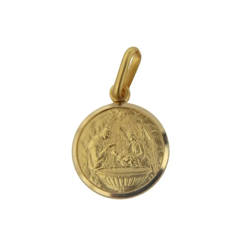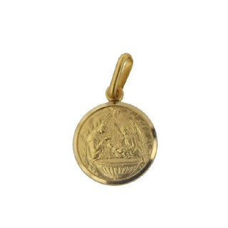 Celebrate the spiritual beauty of baptism with our 18K Solid Yellow Gold Small Baptism Medal Pendant In Two Sizes, available in 12mm (0.47 inches) and 10mm (0.39 inches). Masterfully crafted in Italy from hypoallergenic 18K yellow gold, these finely detailed medals depict a tender baptism scene with a child embraced by angels—symbolizing purity, protection, and divine grace.