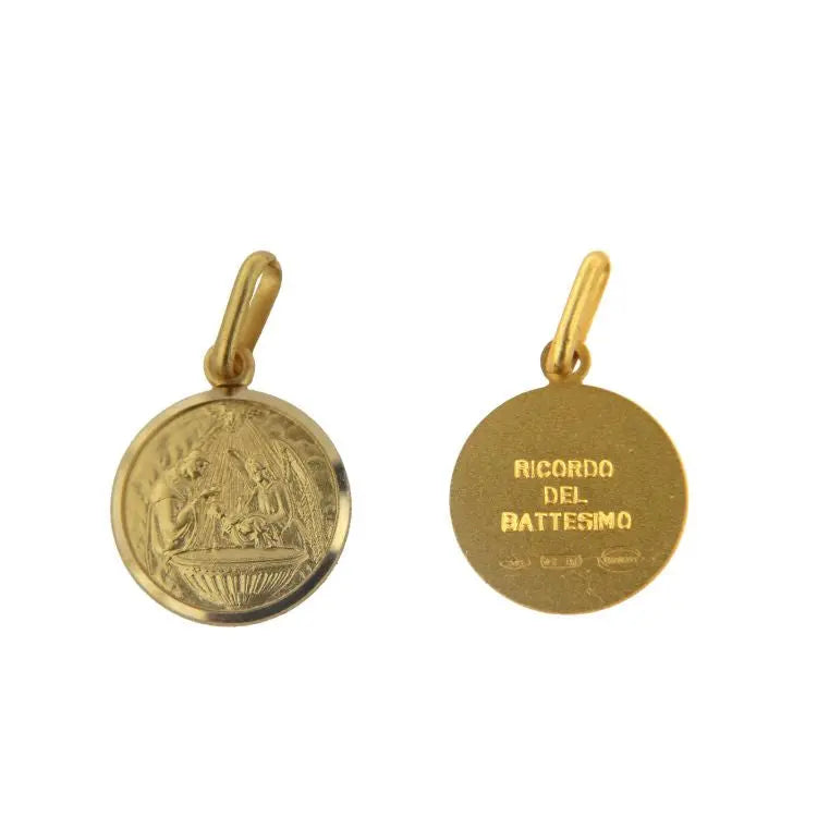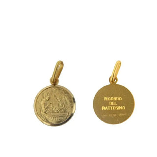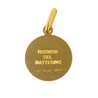 The reverse side of each medal features the graceful inscription "Ricordo del Battesimo", subtly embossed to add an elegant and timeless touch. Designed as both a meaningful keepsake and a refined accessory, these medals offer a lasting tribute to one of life’s most cherished sacraments.