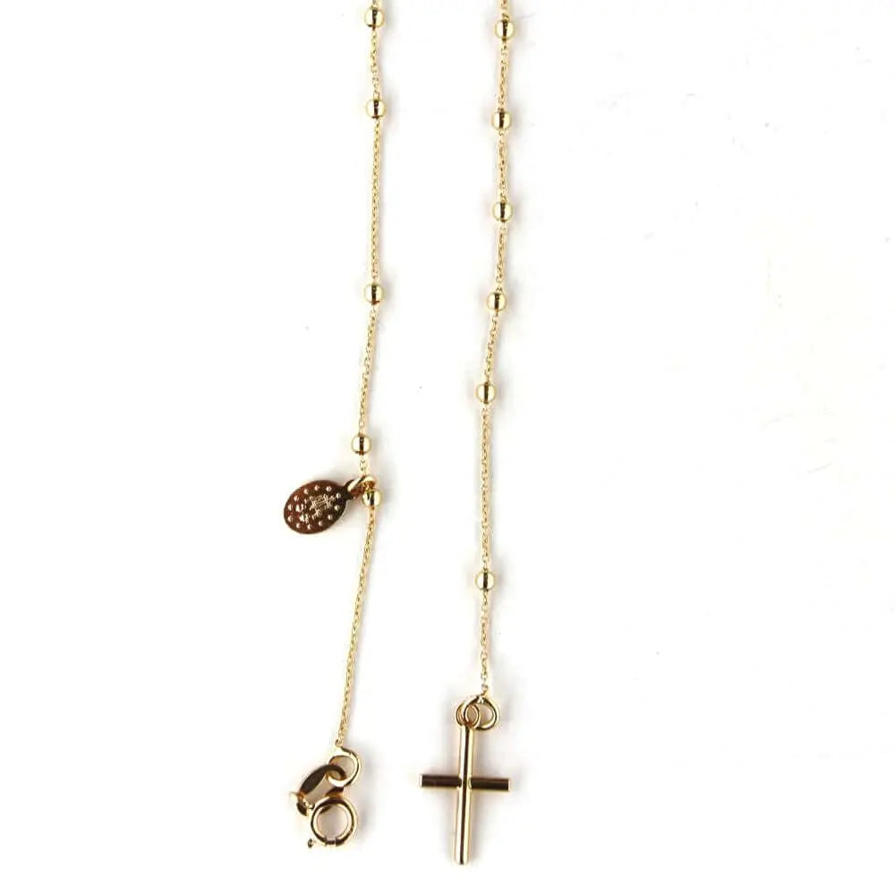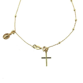 Experience the beauty of faith with our exquisite 18K Solid Yellow Gold Thin Rosary Denarius Bracelet, featuring a Dangling Cross and Miraculous Medal. Crafted in Italy with hypoallergenic 18K yellow gold, this bracelet combines elegance with spiritual significance.