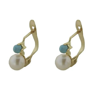 Add a touch of timeless elegance to your child's jewelry collection with our 18K solid yellow gold turquoise paste bead and cultivated pearl lever back earrings. These earrings feature a classic and functional leverback design that is easy to wear and provides a secure and comfortable fit. With a size of 8.50 x 5mm (0.33 x 0.2 inches), these earrings are the perfect size for girls aged 2 to 8 years old.