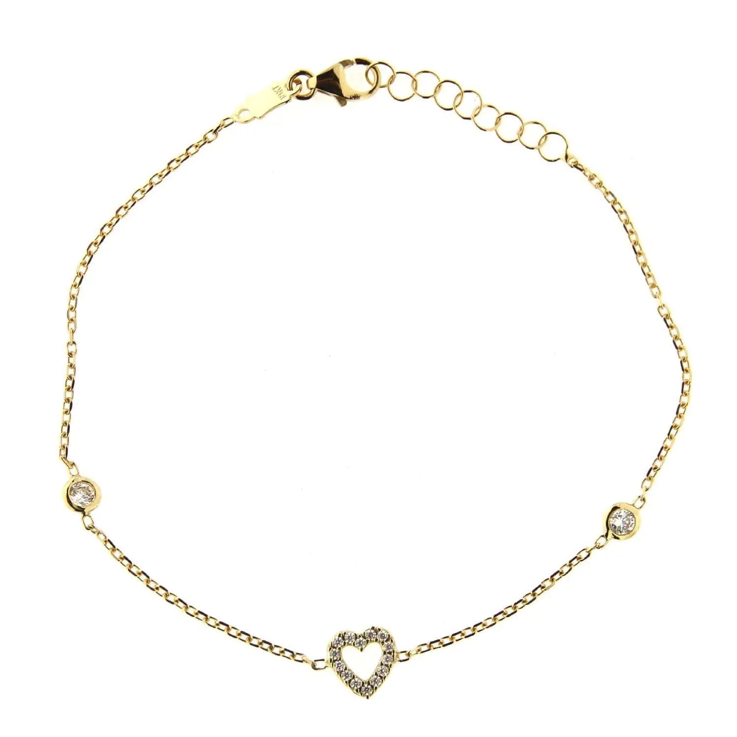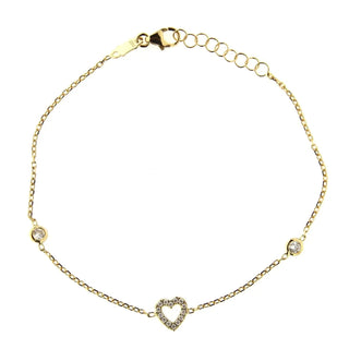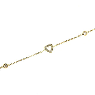 18K Solid Yellow Gold Zircon Heart in line bracelet 7 inches with extra rings starting at 6.50 inches