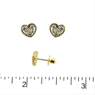 Let your child shine with these timeless and elegant earrings that will be cherished for years to come. Shop now and add some love to your child's style with our 18K Solid Yellow Gold Zirconia Heart Stud Screwback Earrings. They are more than just a piece of jewelry; they are a keepsake of love and joy.