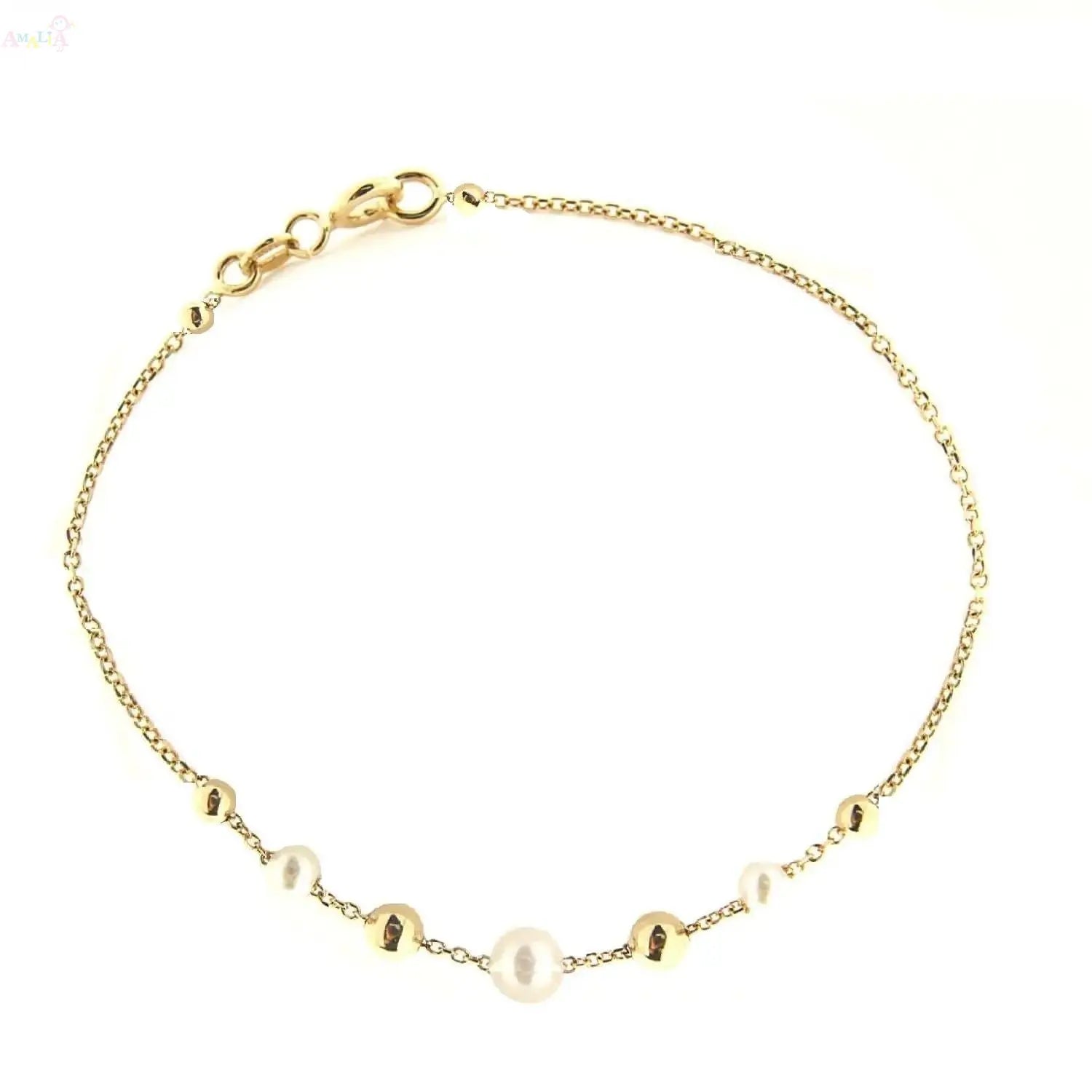 Featuring a stunning centerpiece of graduated cultivated pearls and gold beads, this bracelet is a symbol of grace and beauty. Crafted from hypoallergenic 18K solid yellow gold, it is lead and nickel-free, ensuring safety and comfort for even the most sensitive skin.