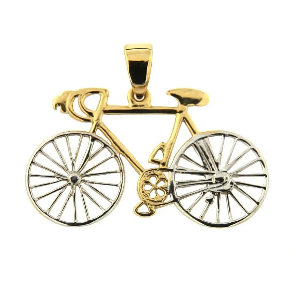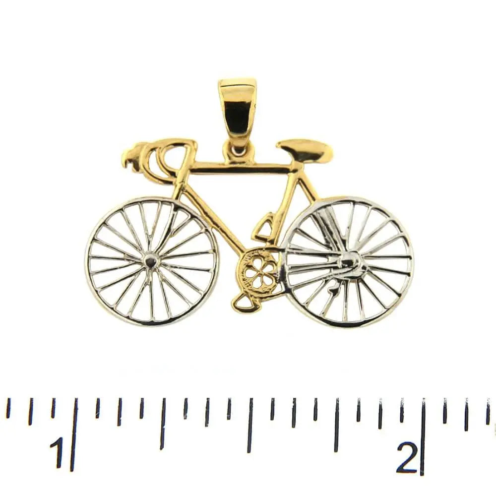 Discover our unique 18K Solid Yellow Gold Two Tone Bicycle Charm Pendant, a beautifully detailed piece designed for those who love cycling and appreciate fine jewelry. Crafted in Italy from hypoallergenic, lead- and nickel-free 18K solid yellow gold with rhodium white accents, this pendant features a stylish bicycle motif brought to life through a stunning two-tone finish.
