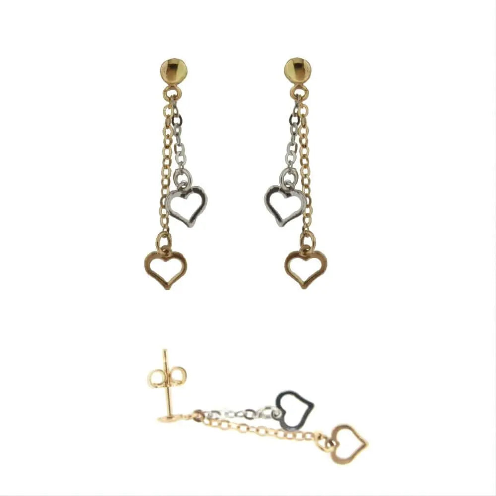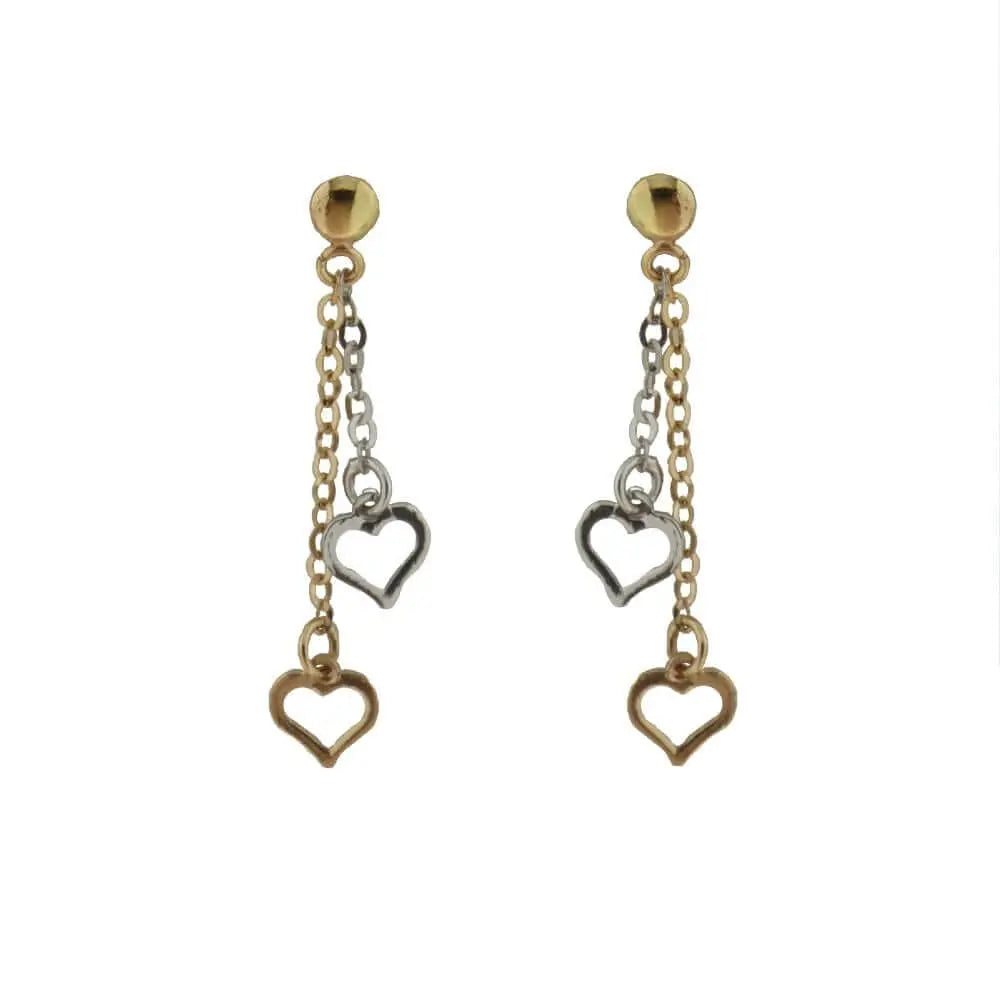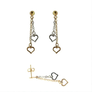 Enhance your elegance with our 18K Two Tone Solid Gold Open Heart Dangle Earrings, a stunning blend of modern style and timeless romance. Measuring approximately 1.16 inches in height, each earring features a graceful yellow gold diamond cut cable chain with an open yellow heart and a white gold diamond cut cable chain with a matching open white heart, creating a captivating two-tone contrast. Expertly crafted in hypoallergenic solid 18K gold, these earrings are nickel-free and lead-free, making them a comfortable choice for sensitive ears. Their delicate movement and refined shine make them perfect for both everyday wear and special occasions. Ideal for birthdays, anniversaries, graduations, or thoughtful “just because” gifts, every pair arrives nestled in an elegant Amalia gift box and bag, ready to delight. Elevate your jewelry collection with these versatile and exquisite two-tone open heart dangle earrings, designed to complement any outfit and celebrate your unique, sophisticated style. A beautiful choice for teens and adults, they bring effortless Italian luxury to your everyday and special-occasion looks, truly.