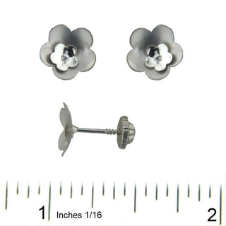 18K White Gold Satin and Polished Flower Screwback Earrings