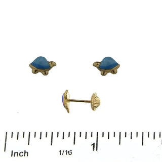 18K Solid Yellow Gold Blue Enamel Turtle Covered Screwback Earrings