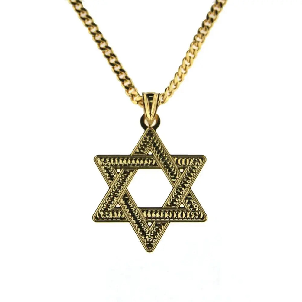Enhance your everyday elegance with our 18K Yellow Gold Men's Diamond-Cut Design Star of David Pendant. Measuring a bold 1.37 inches in height (without the bail), this sophisticated flat pendant captures attention with its striking diamond-cut design. The intricate detailing brings a brilliant shimmer that elevates any attire, whether casual or formal.