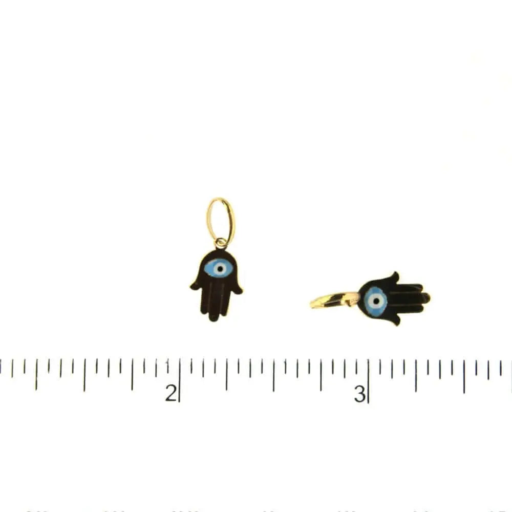 Protective symbolism meets Italian craftsmanship with our 18K Solid Yellow Gold Enamel Evil Eye Hamsa Pendant. Measuring 0.40 x 0.29 inches (0.63 inches with bail), this small yet meaningful charm features the iconic Hamsa hand design, enhanced by an enamel evil eye available in white , pink and blue.
