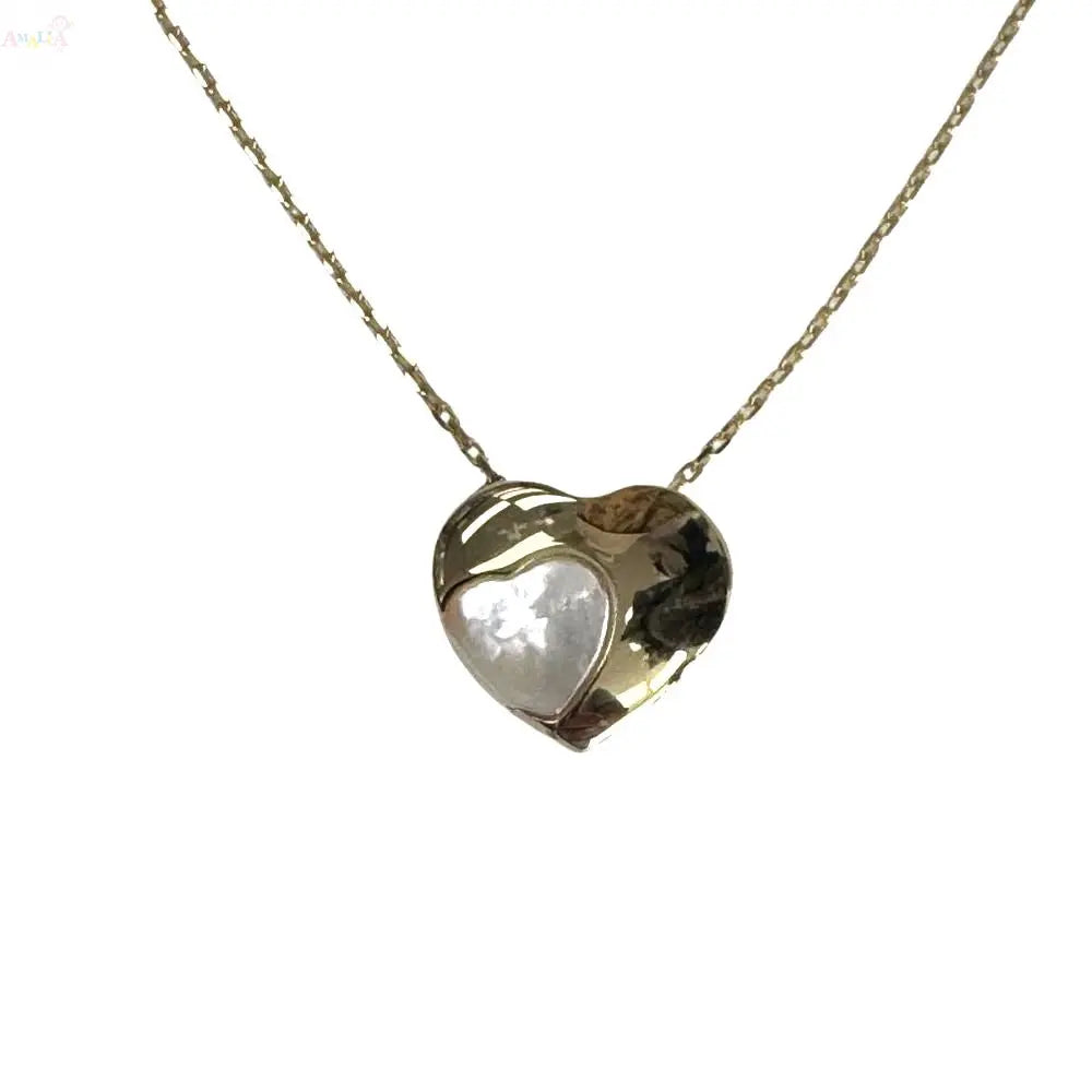 Celebrate love and elegance with our 18K Yellow Gold Mother Pearl Polished Puffy Heart Necklace, a stunning piece handcrafted in Italy. Made from hypoallergenic, solid 18K yellow gold, this necklace features a beautifully polished puffy heart measuring 0.53 x 0.49 inches (13.5mm x 12.5mm). Inside the center heart lies a delicate inlay of mother of pearl in the shape of a smaller heart—an elegant detail that symbolizes layers of affection and care.