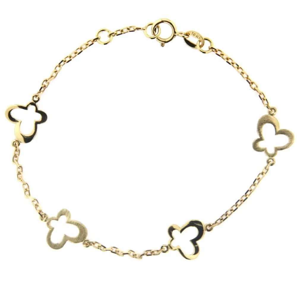 18K Yellow Gold Open Polished and Satin Butterflies Bracelet 6 inches with extra ring at 5.50 inch