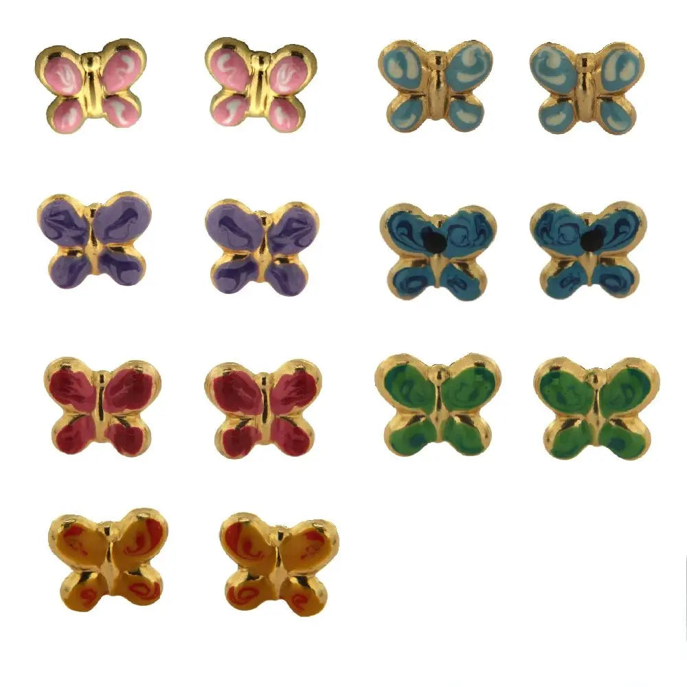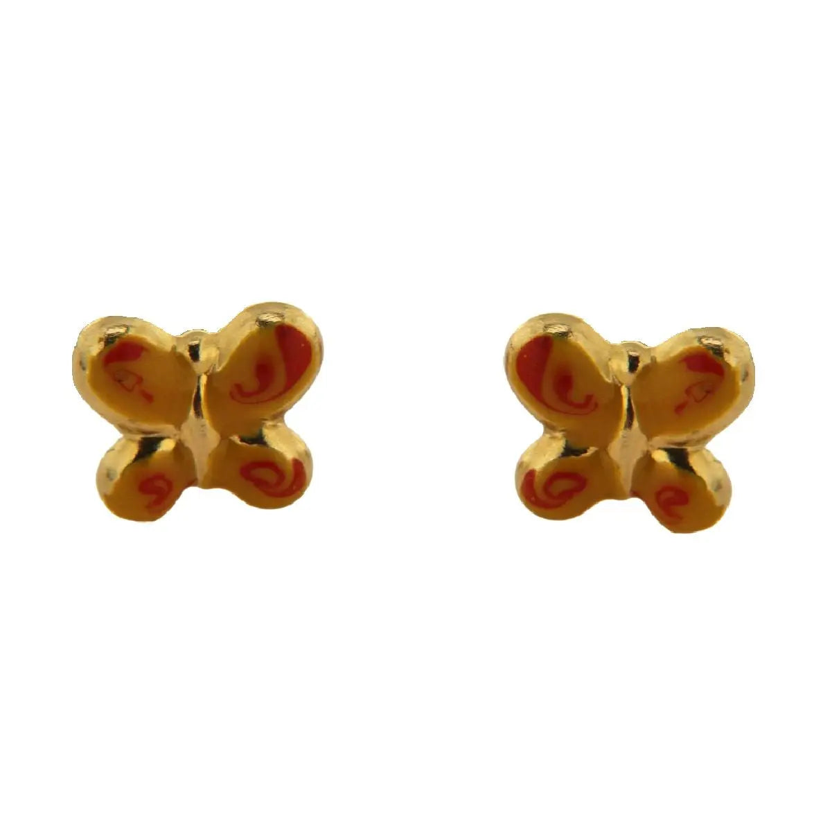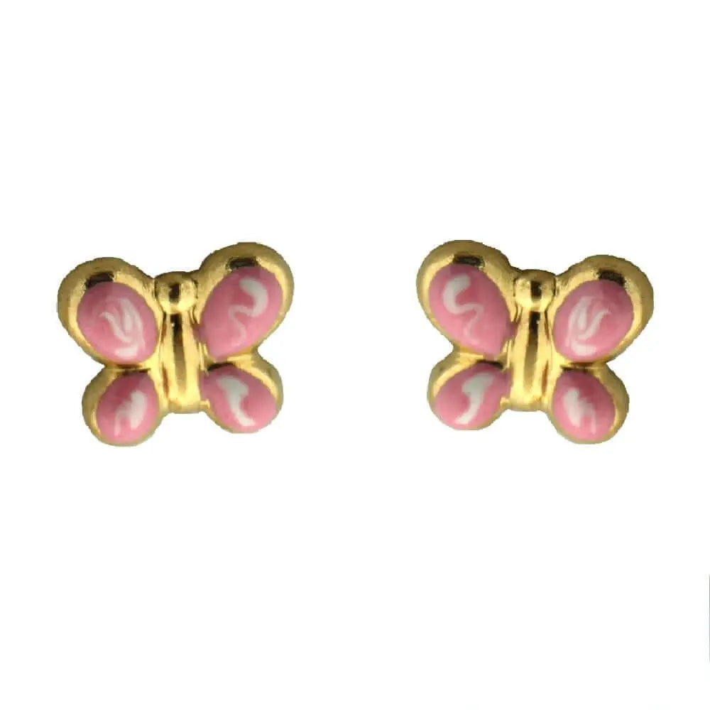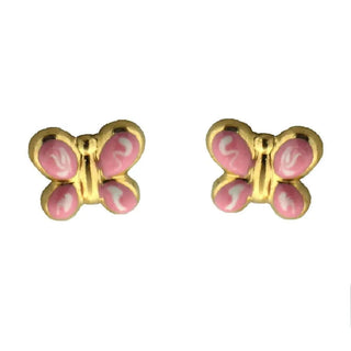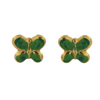 Introduce a burst of color and charm with the 18K Yellow Gold Enamel Butterfly Earrings, perfect for ages 4 and up. These small and delightful earrings, sized at 0.26 x 0.31 inches (7 x 8 mm), feature an enchanting swirl enamel design in light blue, pink, rose, yellow, lavender ,green or blue. Crafted from hypoallergenic 18K yellow gold, they're gentle on sensitive skin and ideal for young jewelry enthusiasts. Match these whimsical butterfly earrings with our butterfly enamel pendant for a coordinated look. Each pair is presented in an Amalia gift box and bag, making them a perfect gift or a cherished addition to a young one's growing jewelry collection.