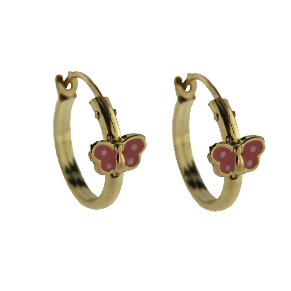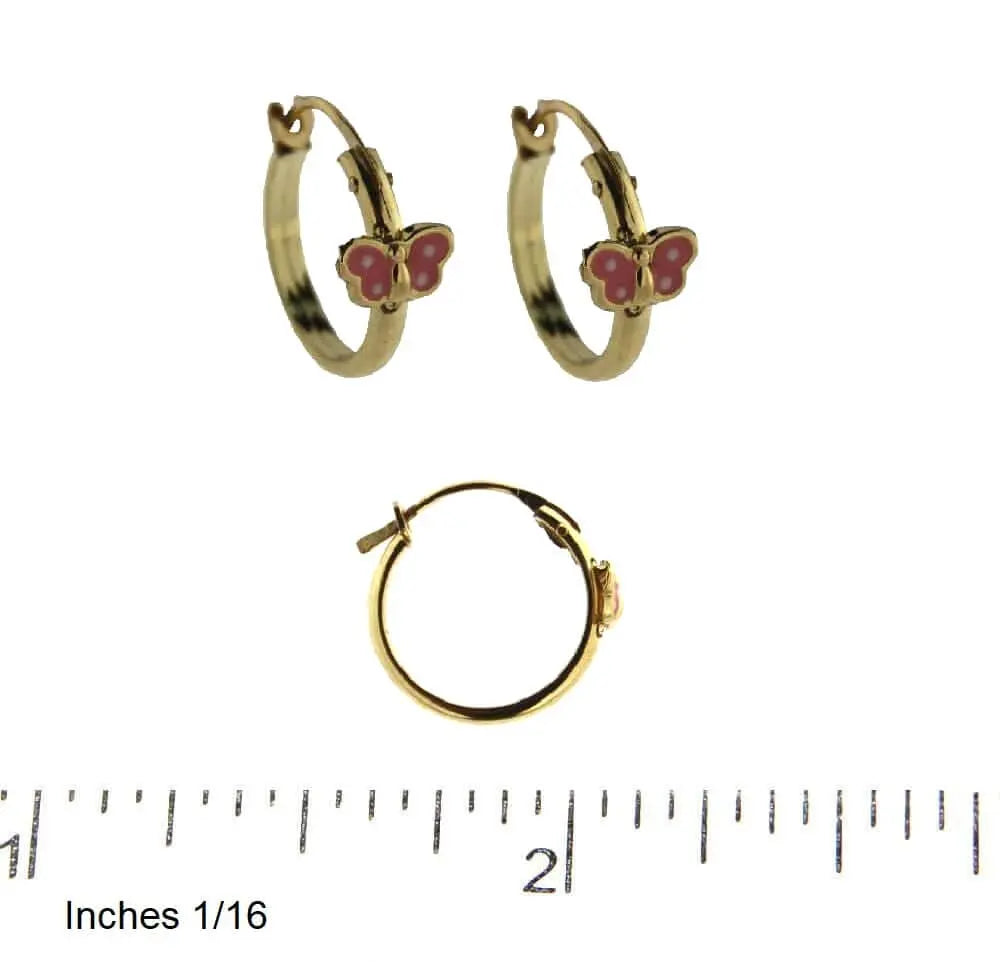Bring a touch of palyfully beauty to your little girl's style with these delightful 18K Solid Yellow Gold Pink and White Dots Enamel Butterfly Hoop Earrings. Measuring 10mm in butterfly size (0.39 inches) and 6mm in internal hoop diameter (0.24 inches), they're perfect for girls who love these delicate creatures. Crafted from hypoallergenic 18K solid yellow gold, these earrings are gentle on even the most sensitive skin. Packaged in an Amalia gift box with a matching bag, they're a thoughtful gift for any occasion. Watch your little one's style take flight with these charming butterfly hoop earrings.
