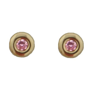 18K Yellow Gold Pink Zirconia bezel Stud Covered Screwback Earrings