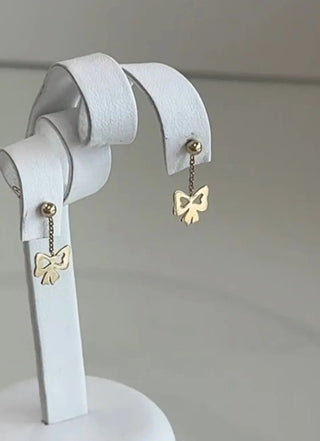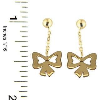 Captivate with charm and elegance through our 18K Solid Yellow Gold Open Bow Dangle Post Earrings, where timeless beauty meets playful sophistication. These uniquely designed earrings, at 0.66 x 0.33 inches, boast an exquisite open bow dangling from a 3mm gold ball, perfect for fashion enthusiasts aged 4 and up. Handcrafted in Italy from hypoallergenic 18k yellow gold, they ensure a comfortable, lead and nickel-free experience. Each pair is elegantly packaged in an Amalia gift box and bag, ready to enchant as the perfect gift. With these open bow dangle post earrings, elevate any outfit or make someone's day with a touch of whimsy and refinement.