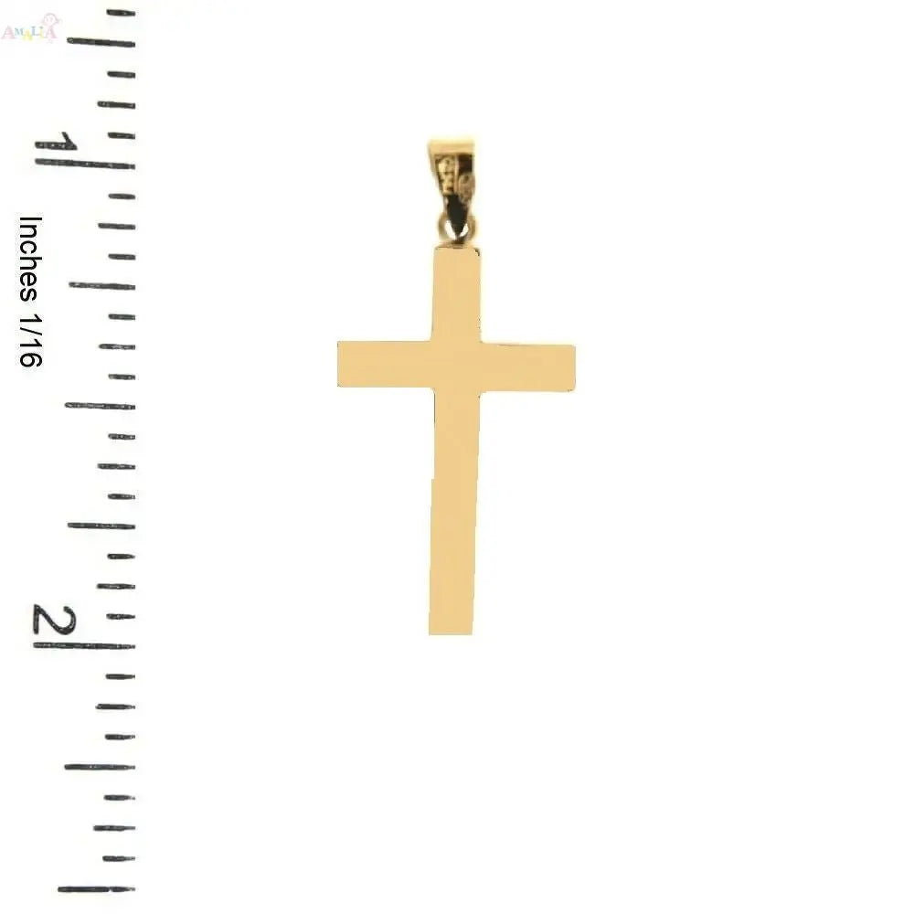 Celebrate faith and elegance with this beautifully crafted 18K Yellow Gold Polished Square Rounded Edge Cross Pendant, designed for lasting wear and timeless style. Measuring approximately 1.03 inches high with bail by 0.50 inches wide, this classic piece features a gently rounded square profile that offers a modern take on a traditional cross. Made in Spain from hypoallergenic solid yellow gold, it ensures both quality and comfort, even for sensitive skin. The pendant features a 2.65 mm hollow tube, making it ideal for pairing with a wide variety of chains. Perfect for ages 9 and up, this thoughtful gift is appropriate for birthdays, communions, confirmations, or everyday spiritual wear. Each pendant arrives carefully packaged in the Amalia gift box and bag, ready for gifting or personal use. With its smooth polished finish and versatile sizing, this elegant gold cross pendant is a meaningful addition to any jewelry collection. Chain not included.