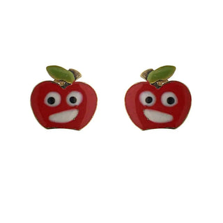 Add a Whimsical Touch with 18k Yellow Gold Red Enamel Apple Face Screwback Earrings