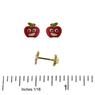 Introducing our enchanting 18K Yellow Gold Red Enamel Apple Face Screwback Earrings, a delightful addition to any young girl's jewelry collection. These adorable earrings, measuring 5.5mm (approximately 0.22 inches), feature a playful apple face design that adds a fun and charming flair to her everyday look.
