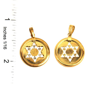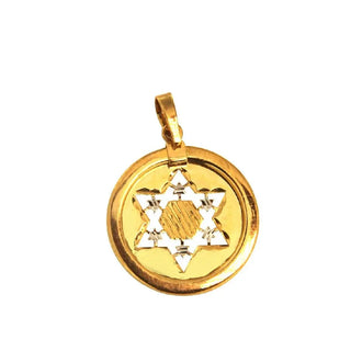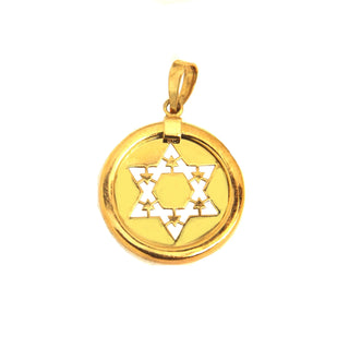 Discover the exquisite elegance of our 18K Solid Yellow Gold Star of David Cut-Out Medal Pendant. Crafted with unparalleled attention to detail, this pendant showcases a beautiful design featuring a rhodium accent and intricate line designs within the Star of David on one side, complemented by a polished finish on the reverse for a truly unique look. With a diameter of 0.73 inches (18.7 mm), this pendant exudes sophistication and style. Made from hypoallergenic 18K gold, it is not only a symbol of faith but also a testament to craftsmanship and quality. Each pendant comes in an Amalia gift box, making it the perfect present for someone special or a treasured addition to your own collection. Elevate your jewelry ensemble with this distinctive and meaningful pendant.