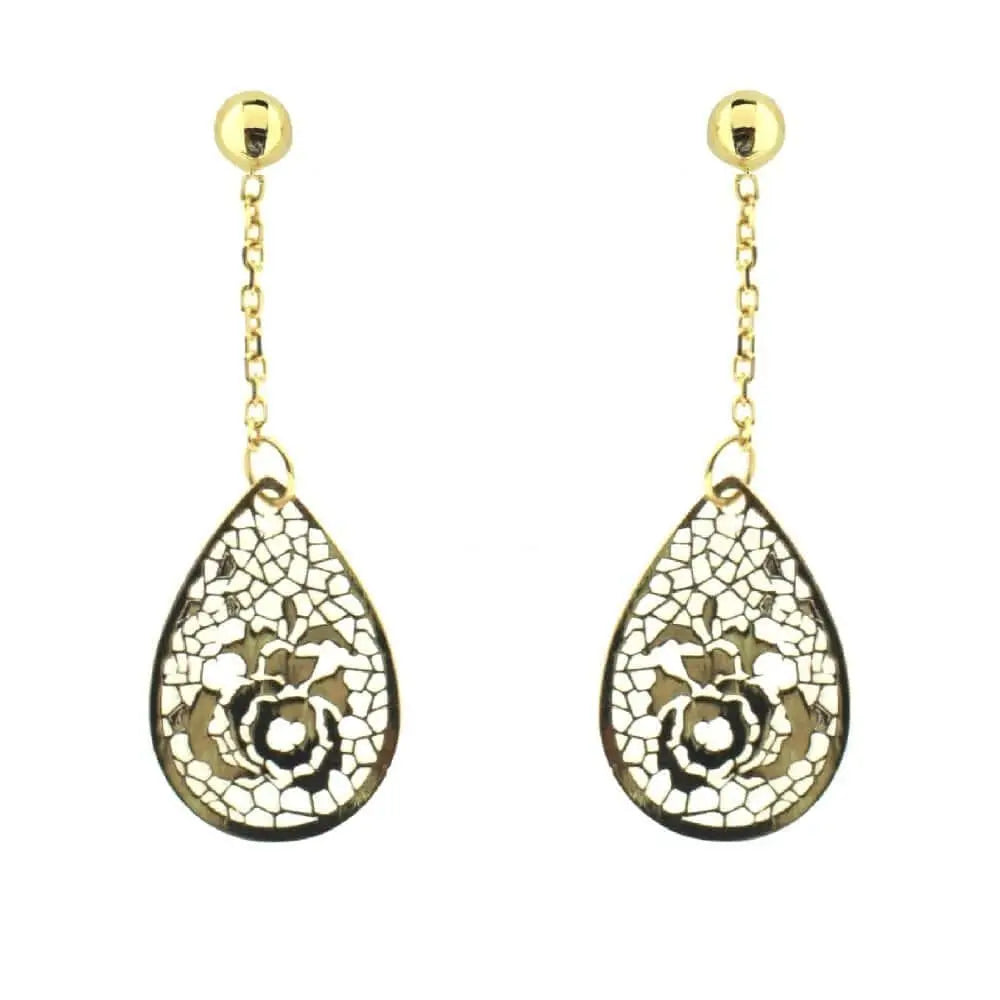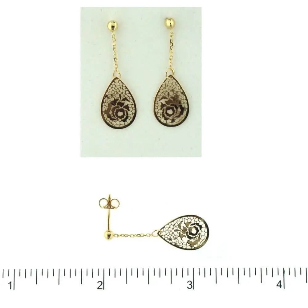 Discover elegance with our 18K Yellow Gold Tear Drop Shape Rose Design Dangle Earrings, meticulously crafted in Italy. Each earring showcases a beautifully detailed rose design, exuding timeless sophistication.Crafted from hypoallergenic 18K gold, these earrings offer both luxury and comfort for sensitive ears. Their tear drop shape adds a touch of uniqueness to your ensemble, making them a versatile addition to your jewelry collection.Presented in a stylish gift bag and box, these earrings make a thoughtful and elegant gift for someone special or a cherished indulgence for yourself. Elevate your style with the timeless beauty of our 18K Yellow Gold Tear Drop Shape Rose Design Dangle Earrings—a symbol of enduring elegance and grace.