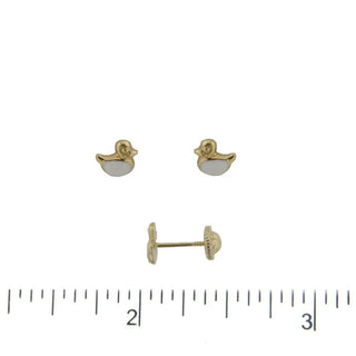 18K Yellow Solid Gold White Enamel Duck Screwback Earrings