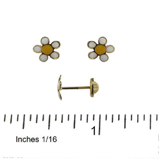 Delightful 18K Yellow Gold White Enamel Flower Screwback Earrings for Girls