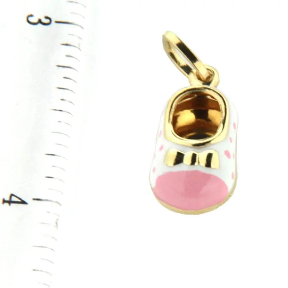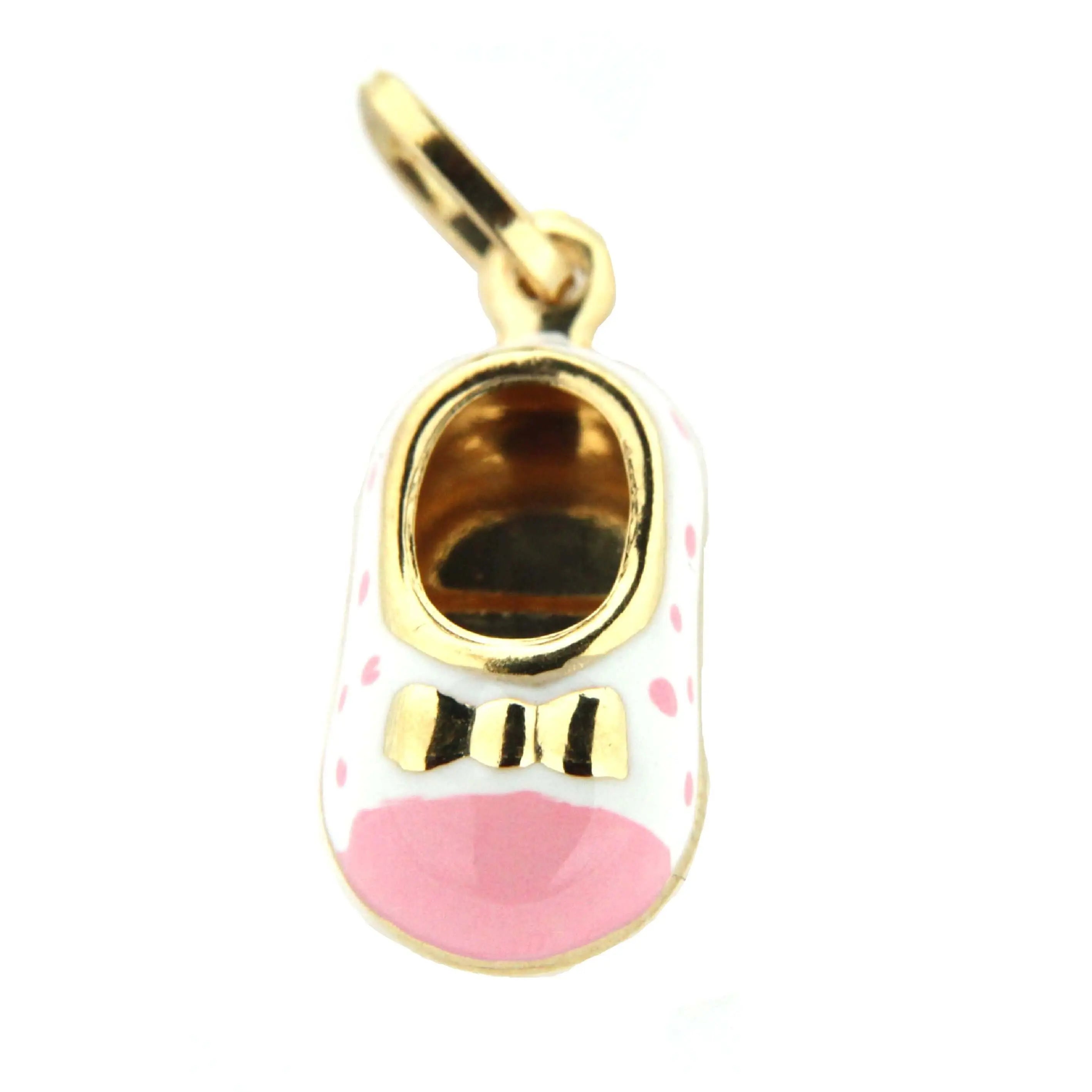 18K Yellow Gold White Enamel Shoe Charm with pink toe and dots