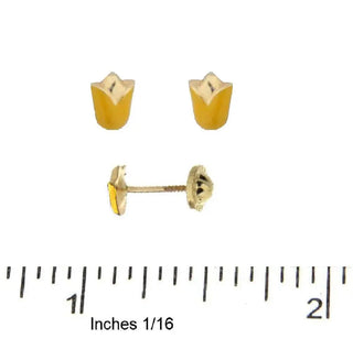 18K Solid Yellow Gold Yellow Enamel Tulip Flower Covered Screwback Earrings