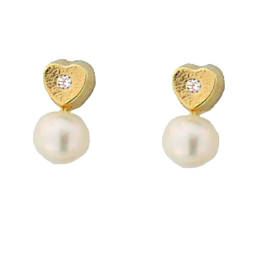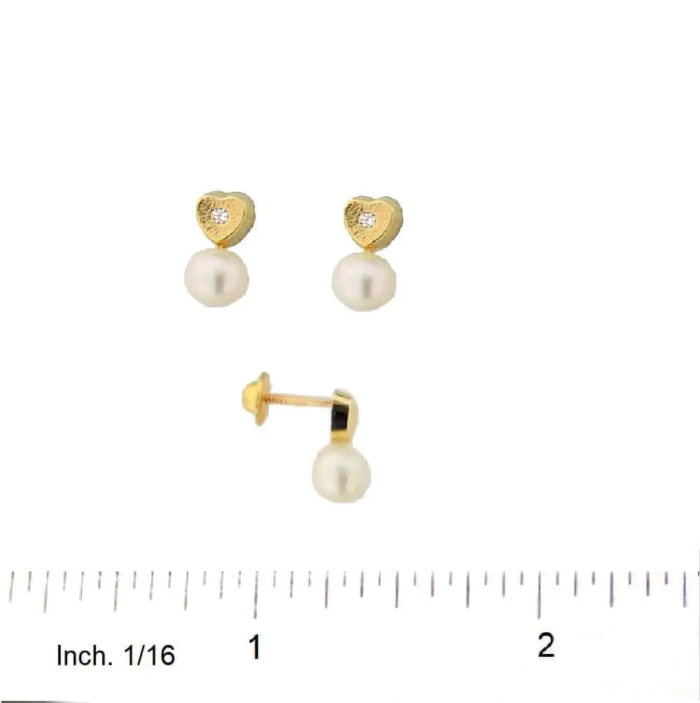 Add a touch of elegance to your little girl's ensemble with these luxurious 18K Yellow Gold Zirconia and Pearl Heart Screwback Earrings. Featuring a dazzling combination of a sparkling zirconia heart and a lustrous 5mm cultivated pearl, these earrings are a unique and stunning addition to any jewelry collection.