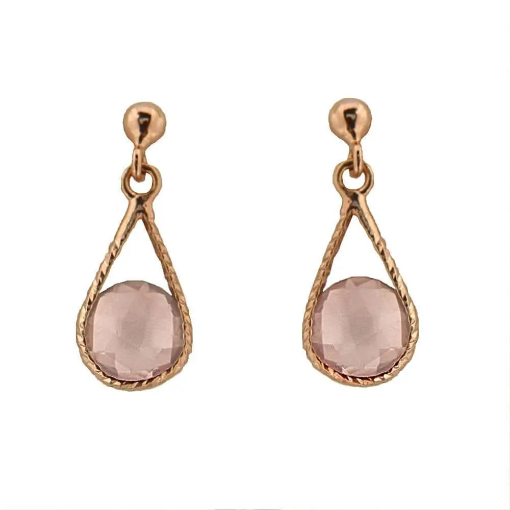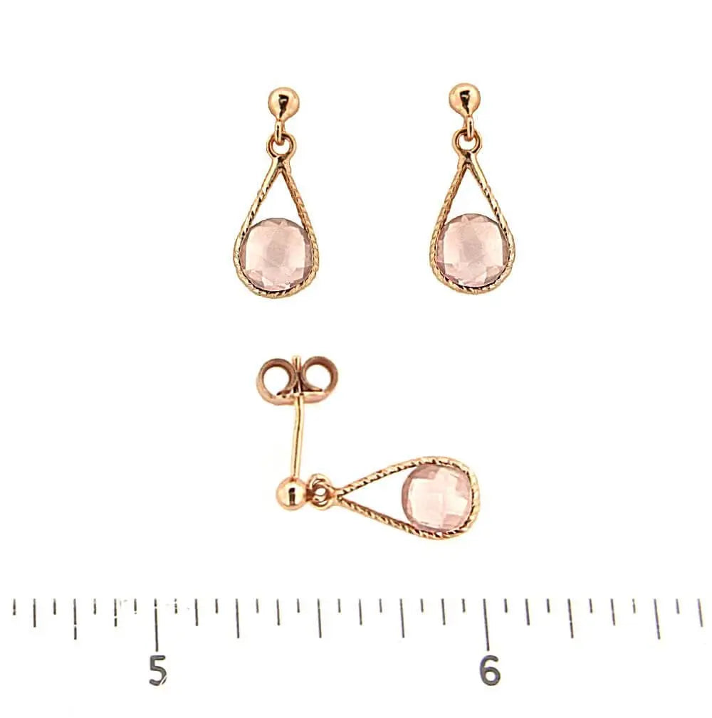 18Kt Solid Pink Gold Round Faceted Pink Quartz Drop Dangle Post Earrings L 0.60 inch