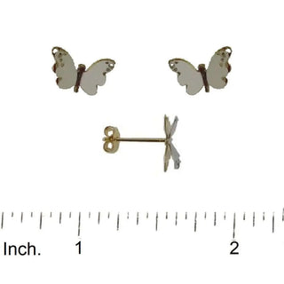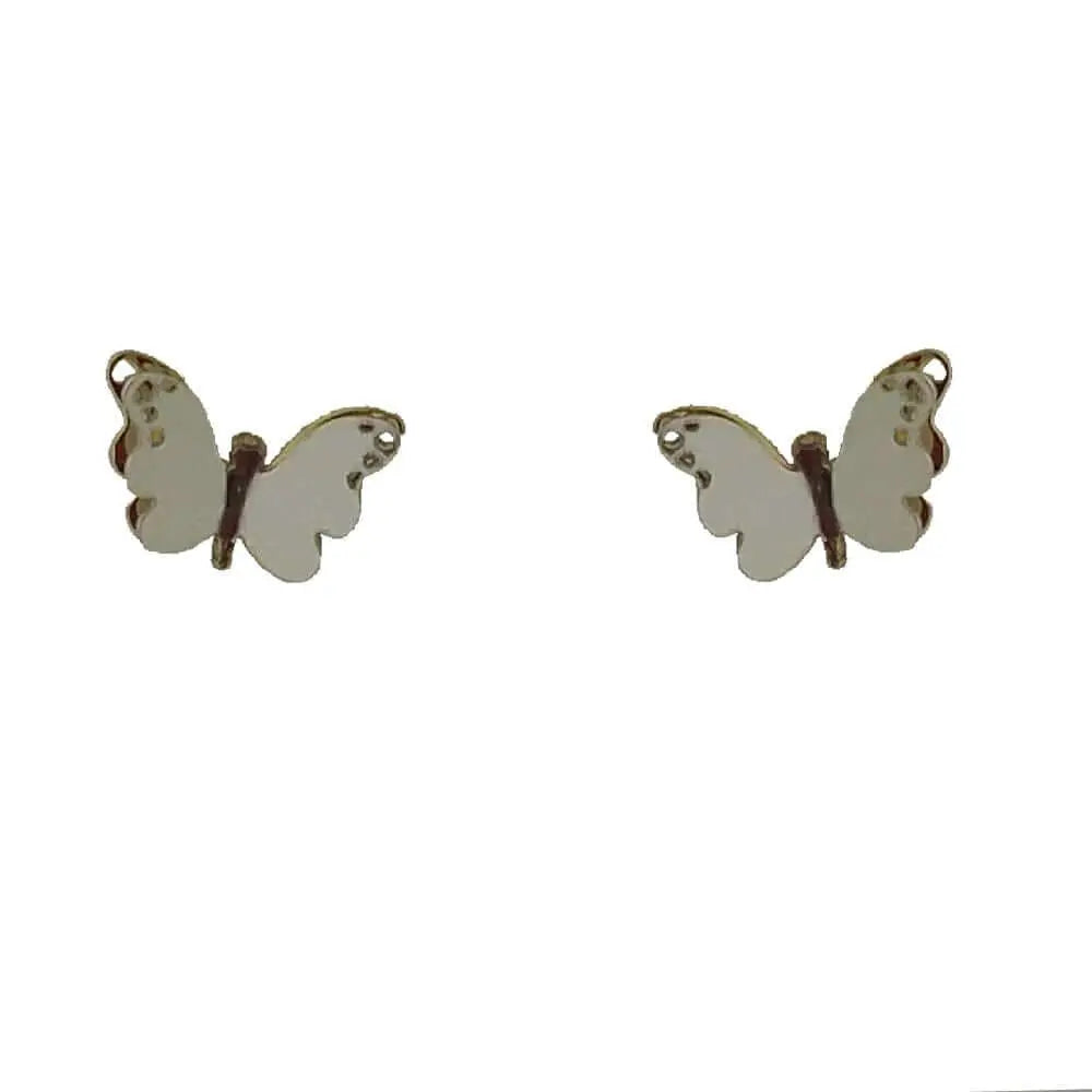 18kt Solid White & Yellow Gold Double Butterfly Stud Earrings