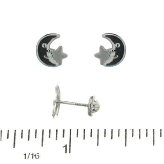 18K Solid White Gold Half Moon with Satin Finish Star Covered Screwback Earrings